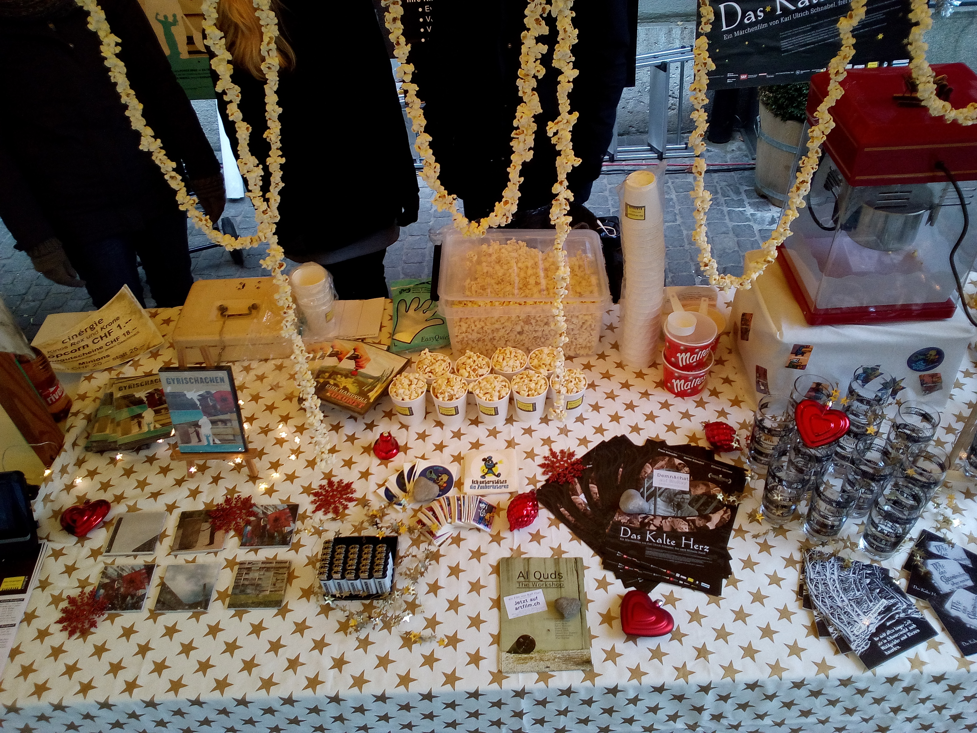 Nebst Popcorn waren schöne Weihnachtsgeschenke wie Biergläser oder Postkartenbüchlein im Angebot. Verpasst? Kein Problem: Die Artikel sind im Online-Shop noch bis zu Weihnachten erhältlich. 🙂